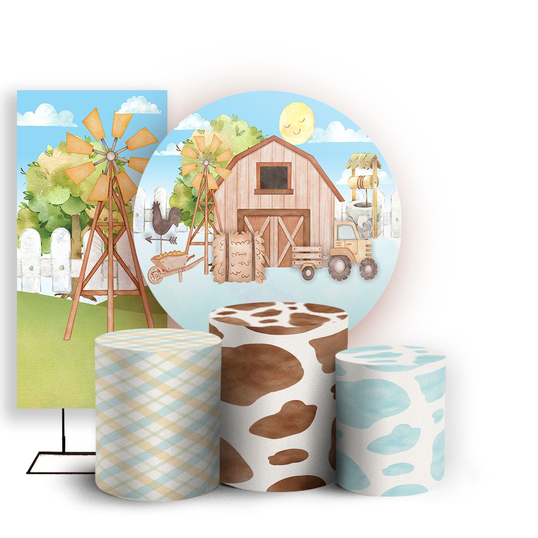 KIT Redondo Trio e Faixa - Fazendinha Aquarela - Sublimado 3D