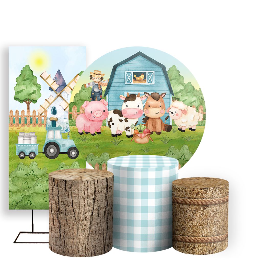 KIT Redondo Trio e Faixa - Fazendinha Aquarela - Sublimado 3D