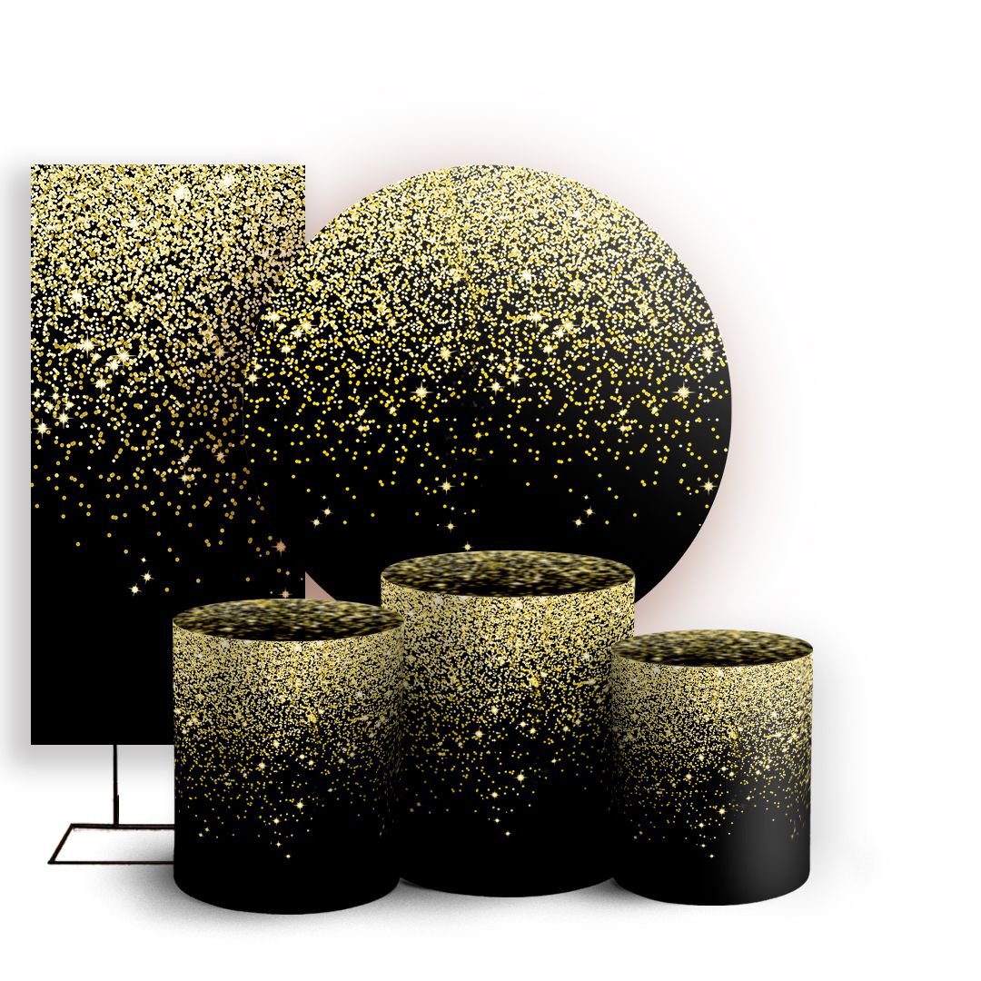 KIT Redondo Trio e Faixa - Glitter Preto Dourado - Sublimado 3D