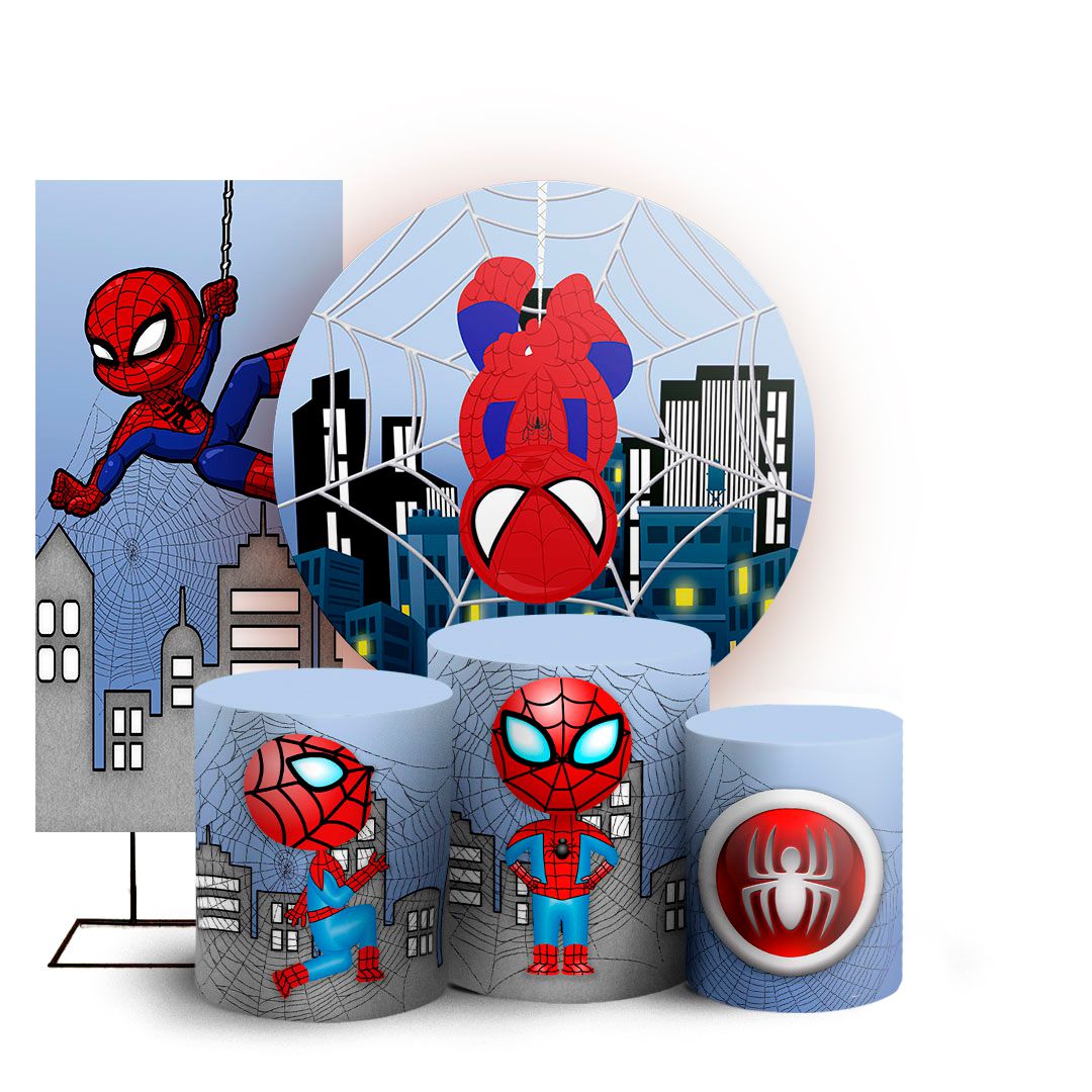 KIT Redondo Trio e Faixa - Homem Aranha Cute - Sublimado 3D
