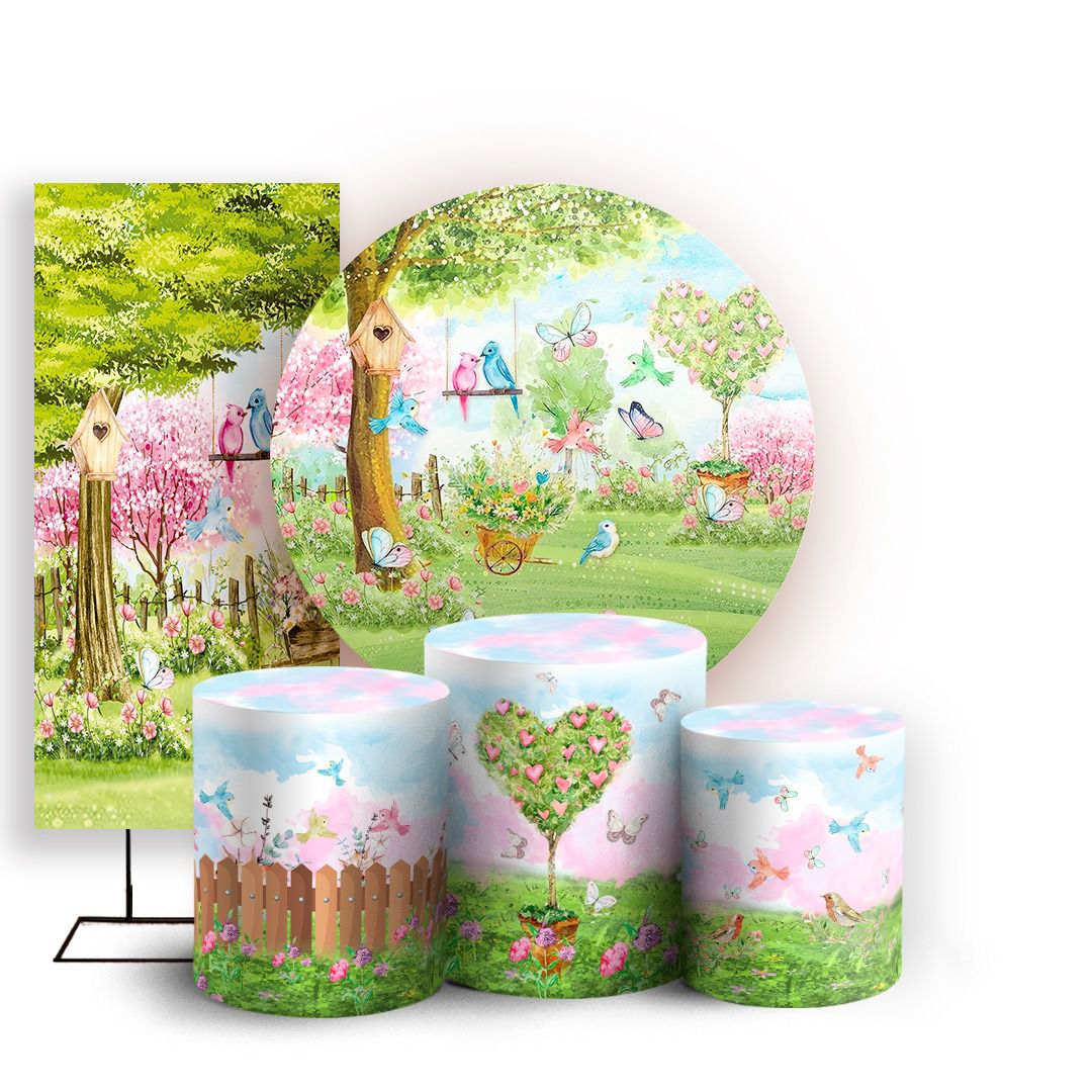 KIT Redondo Trio e Faixa - Jardim Aquarela - Sublimado 3D