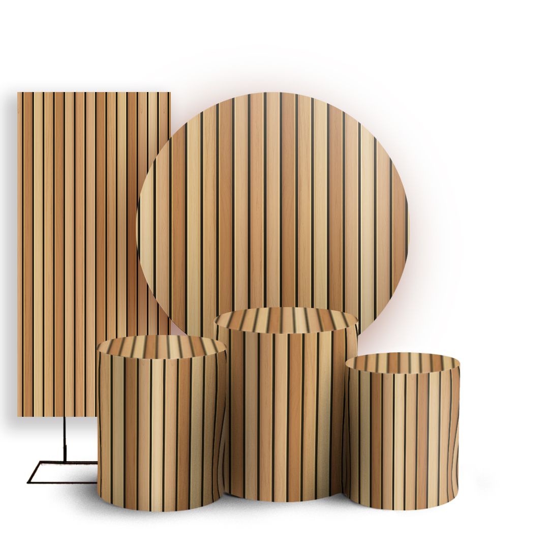 KIT Redondo Trio e Faixa - Madeira Ripada - Sublimado 3D