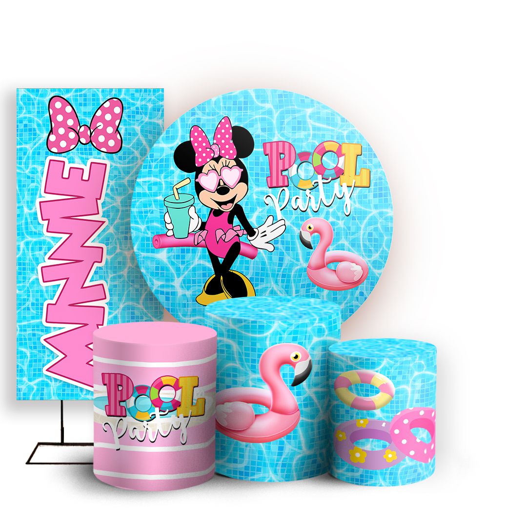 KIT Redondo Trio e Faixa - Minnie Pool Party - Sublimado 3D