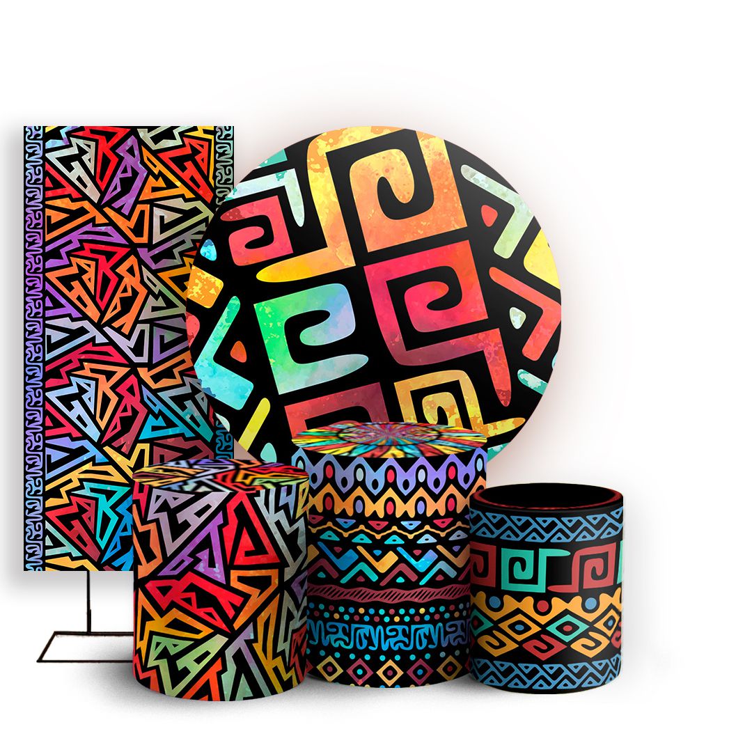 KIT Redondo Trio e Faixa - Padrão Africano - Sublimado 3D