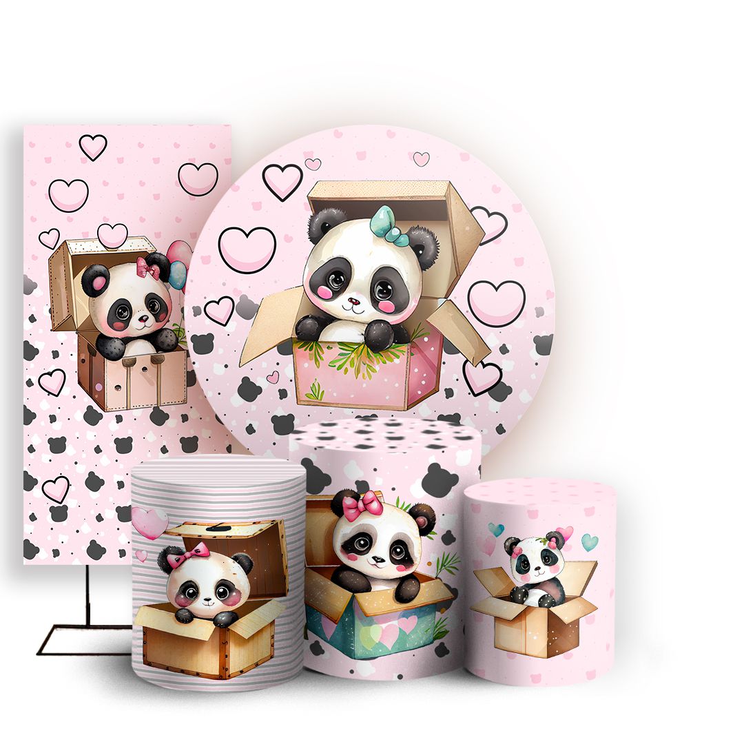 KIT Redondo Trio e Faixa - Panda Rosa - Sublimado 3D