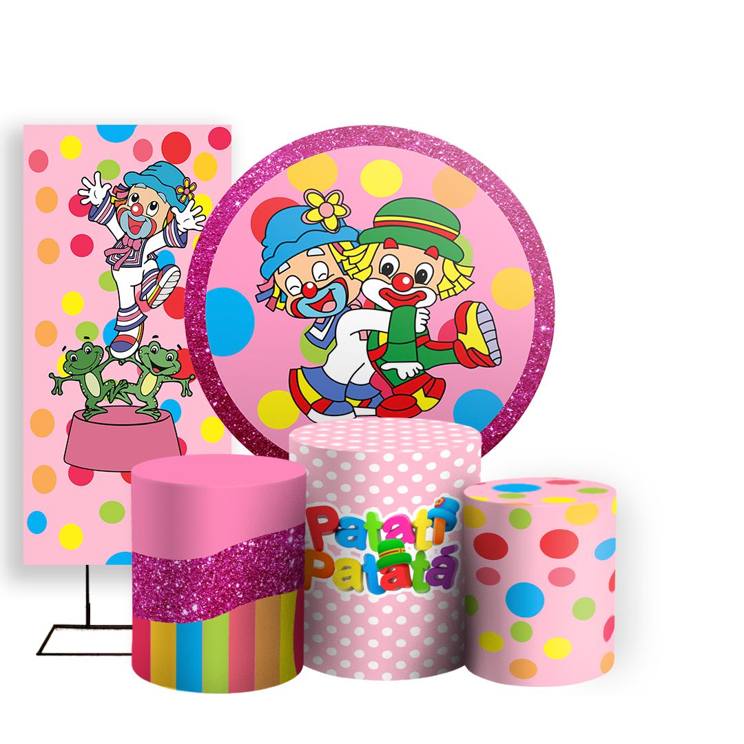 KIT Redondo Trio e Faixa - Patati Patata Rosa - Sublimado 3D