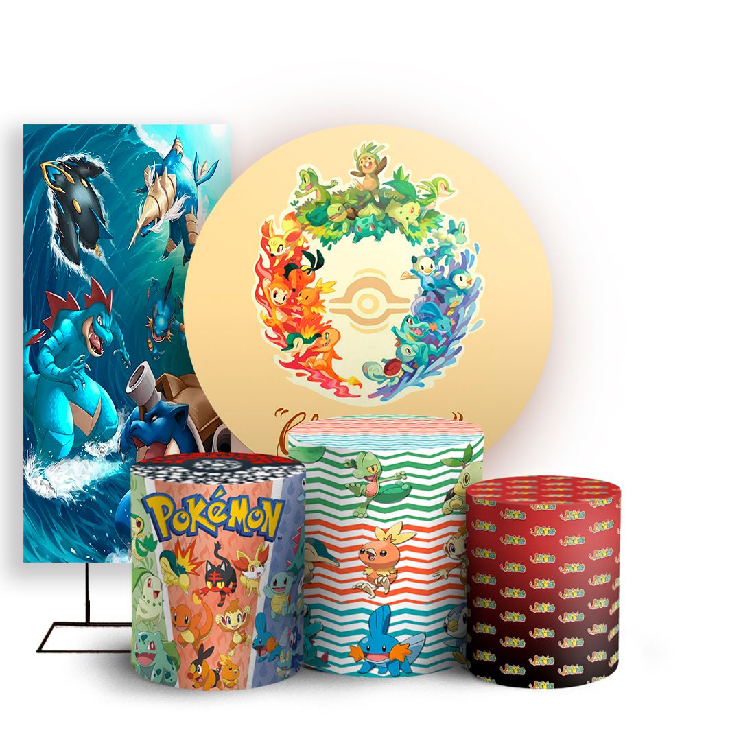 KIT Redondo Trio e Faixa - Pokemon Iniciais - Sublimado 3D