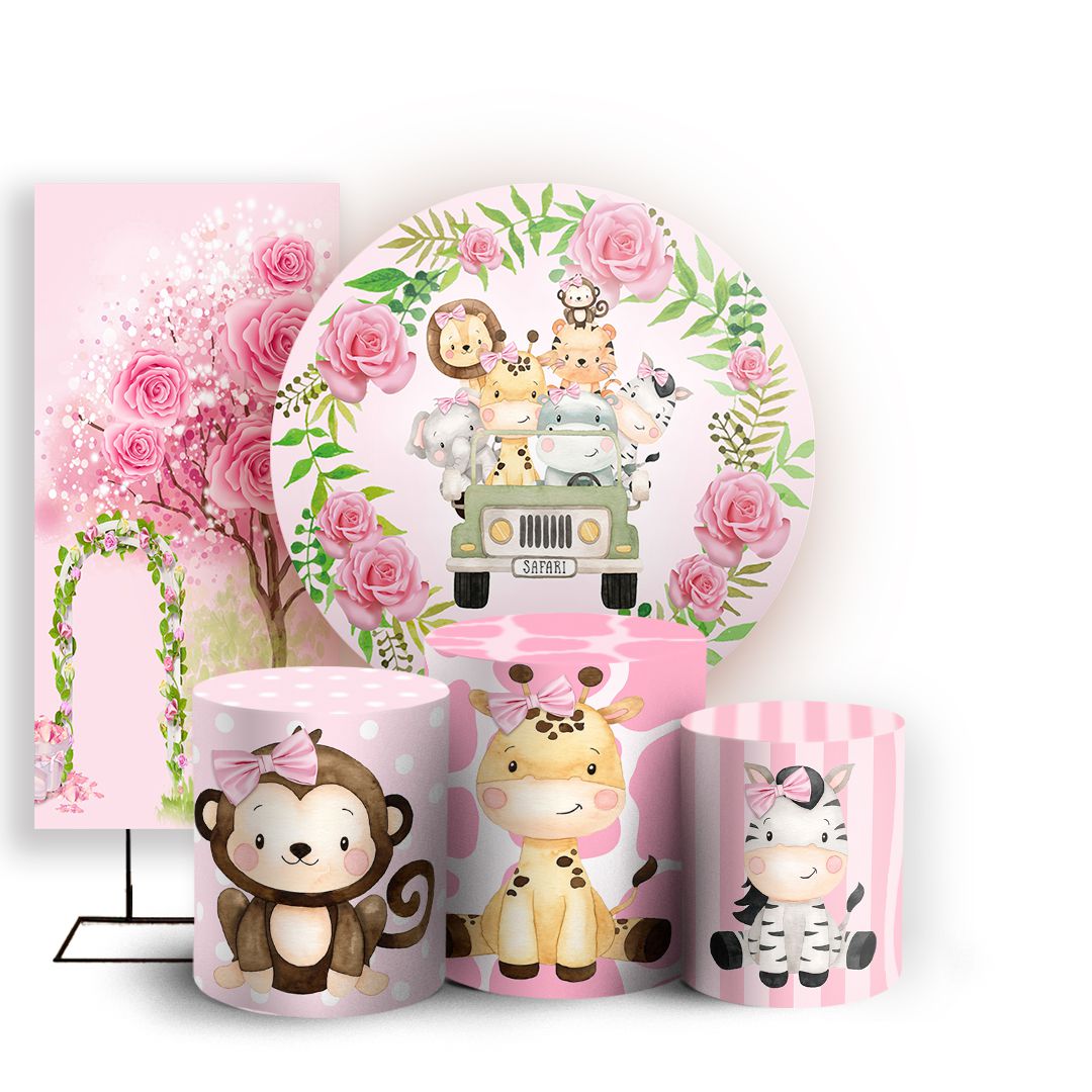 KIT Redondo Trio e Faixa - Safari Rosa - Sublimado 3D