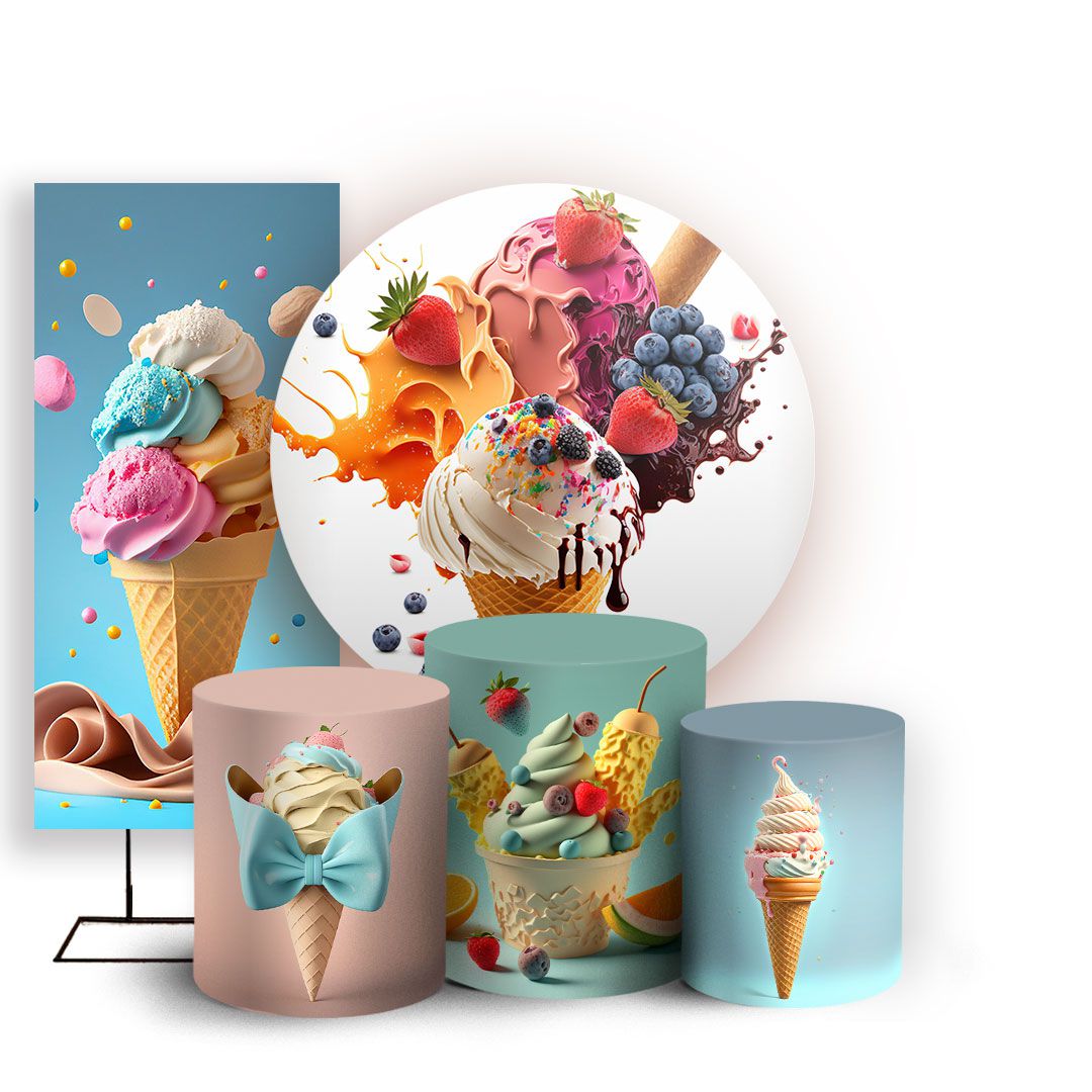 KIT Redondo Trio e Faixa - Sorveteria - Sublimado 3D