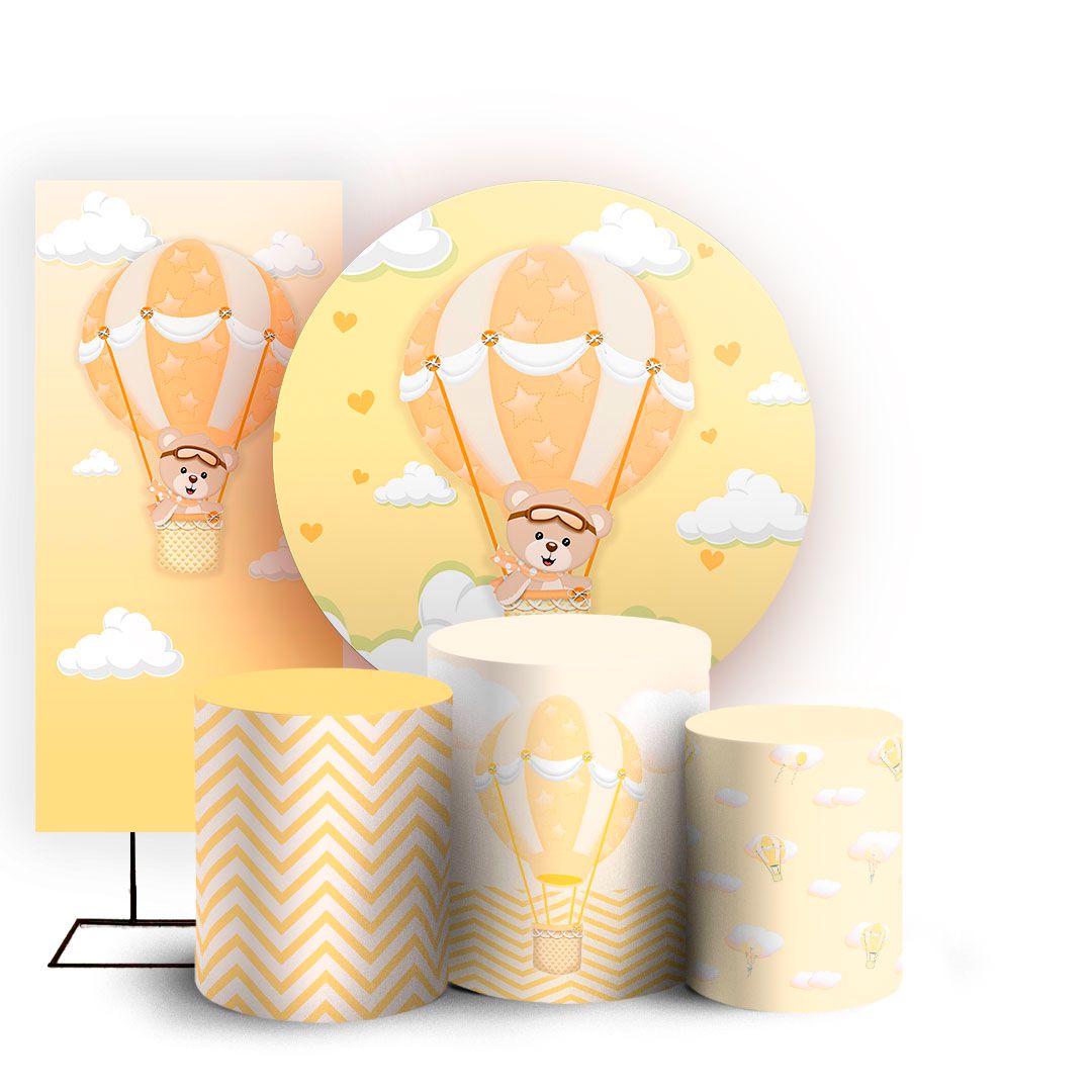 KIT Redondo Trio e Faixa - Ursinha Baloeira Amarela - Sublimado 3D