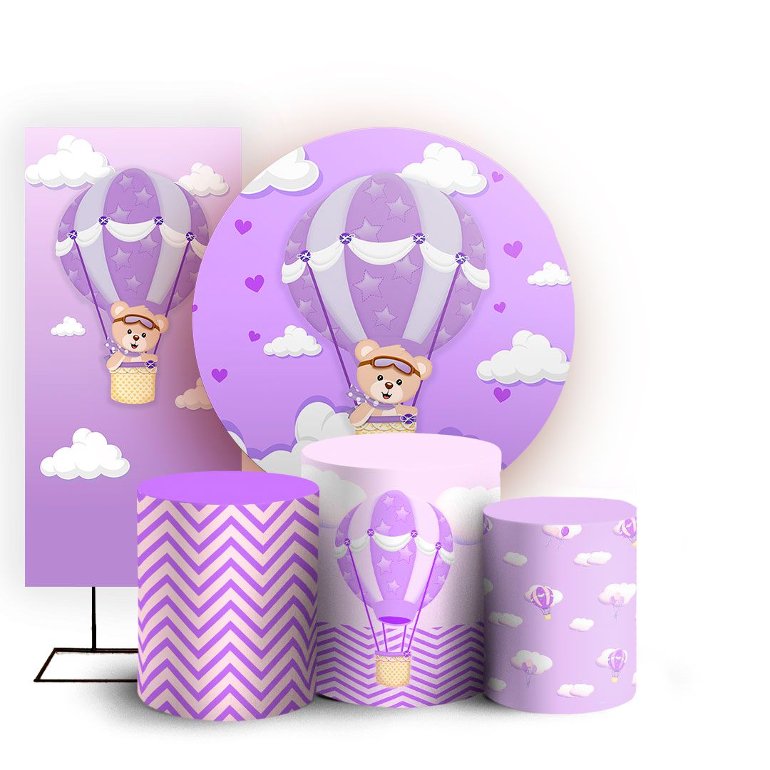 KIT Redondo Trio e Faixa - Ursinha Baloeira Lilás - Sublimado 3D