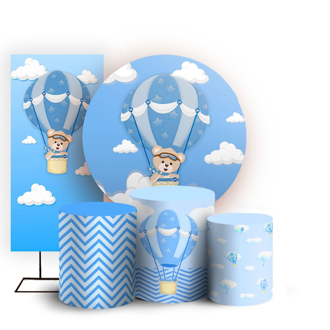 KIT Redondo Trio e Faixa - Ursinho Baloeiro Azul - Sublimado 3D