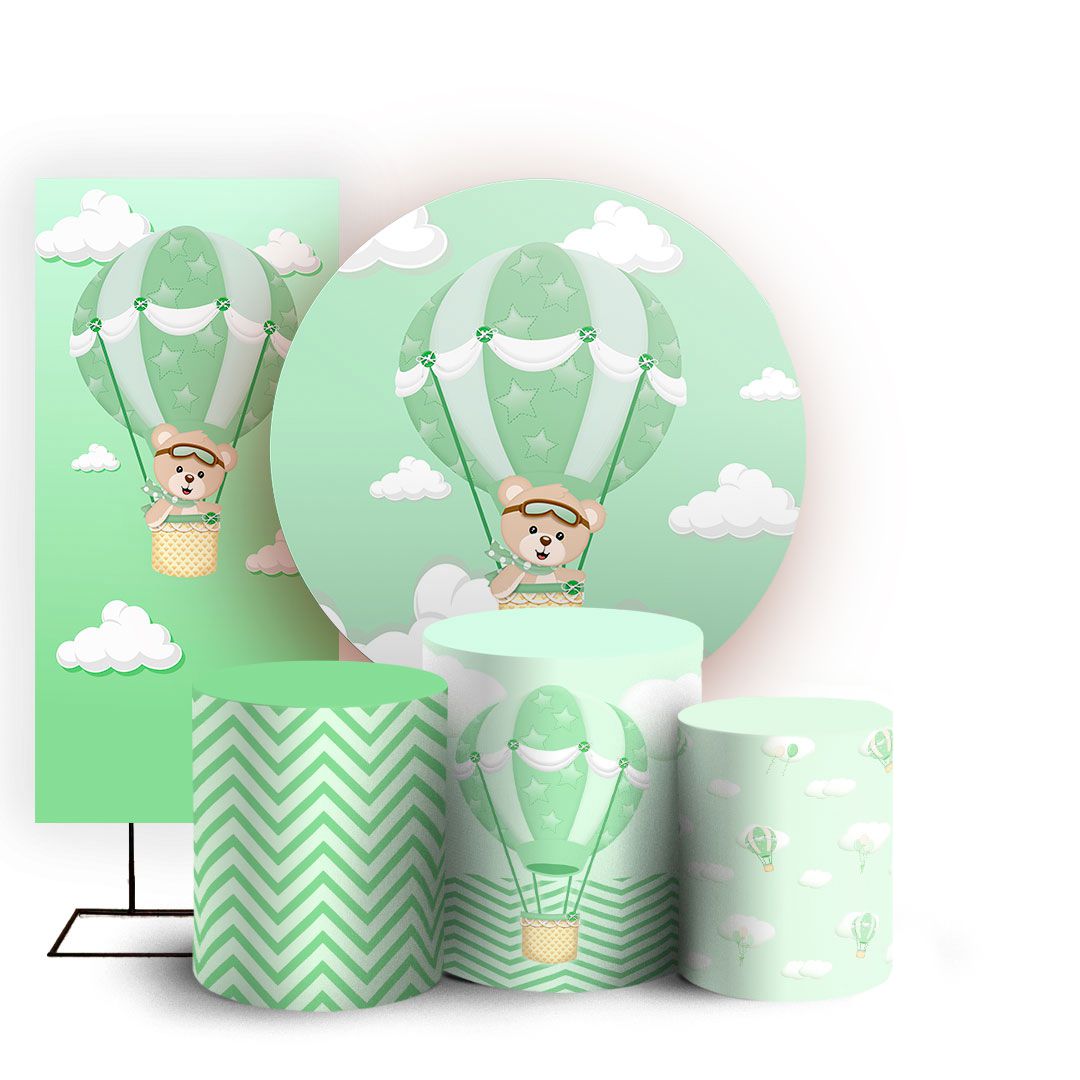 KIT Redondo Trio e Faixa - Ursinho Baloeiro Verde - Sublimado 3D