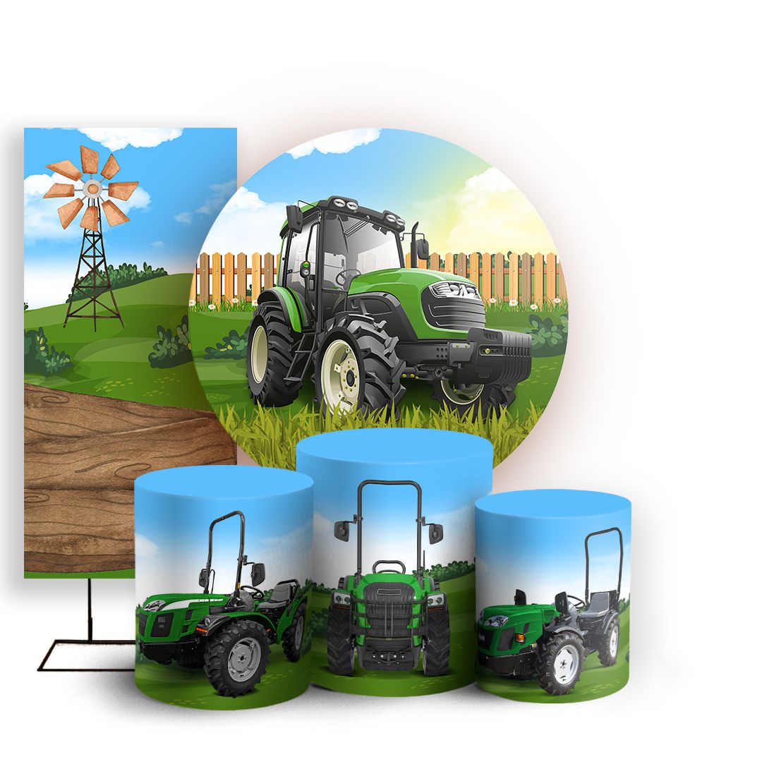 KIT Redondo Trio e Faixa - Fazendinha Trator - Sublimado 3D
