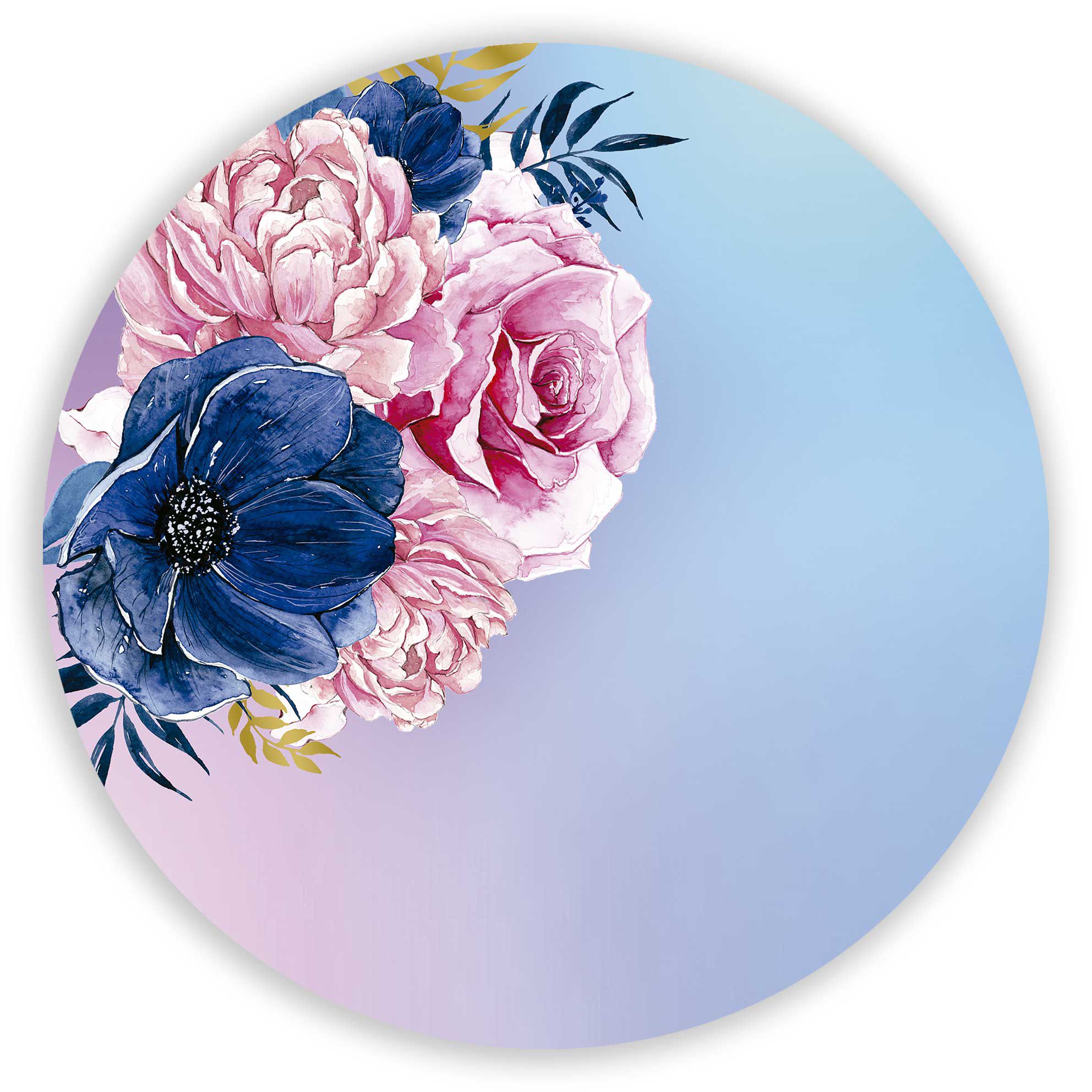 Painel Redondo em tecido helanca premium 100% poliéster, gramatura 225G. Acabamento com overloque e elástico para fácil instalação.
