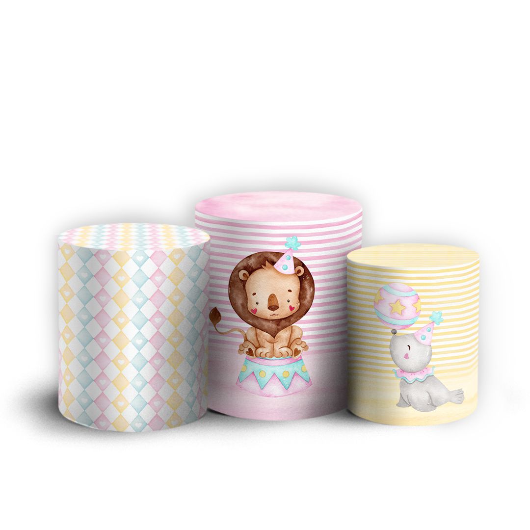 Trio Cilindro - Circo Rosa Aquarelado - Sublimado 3D + Elástico