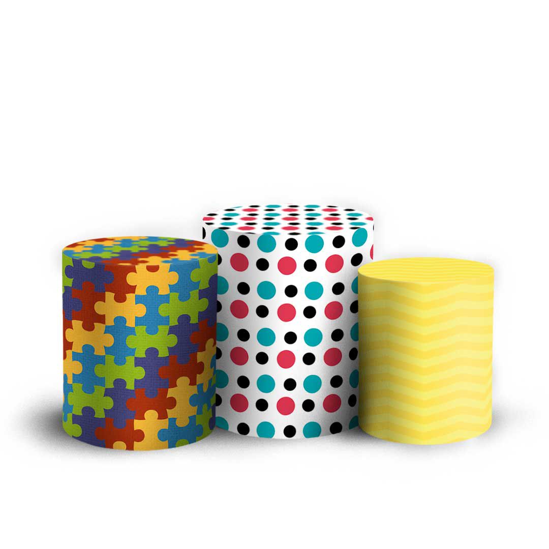 Trio Cilindro - Dia das Crianças - Sublimado 3D + Elástico
