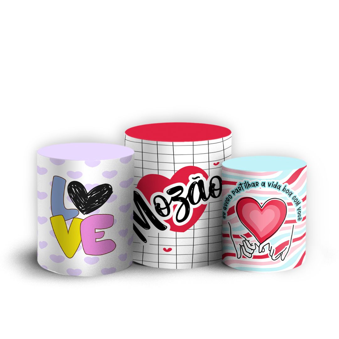 Trio Cilindro - Dia dos Namorados - Sublimado 3D + Elástico