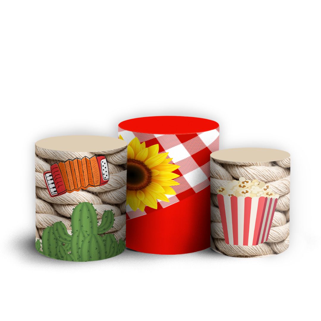 Trio Cilindro - Festa Junina - Sublimado 3D + Elástico