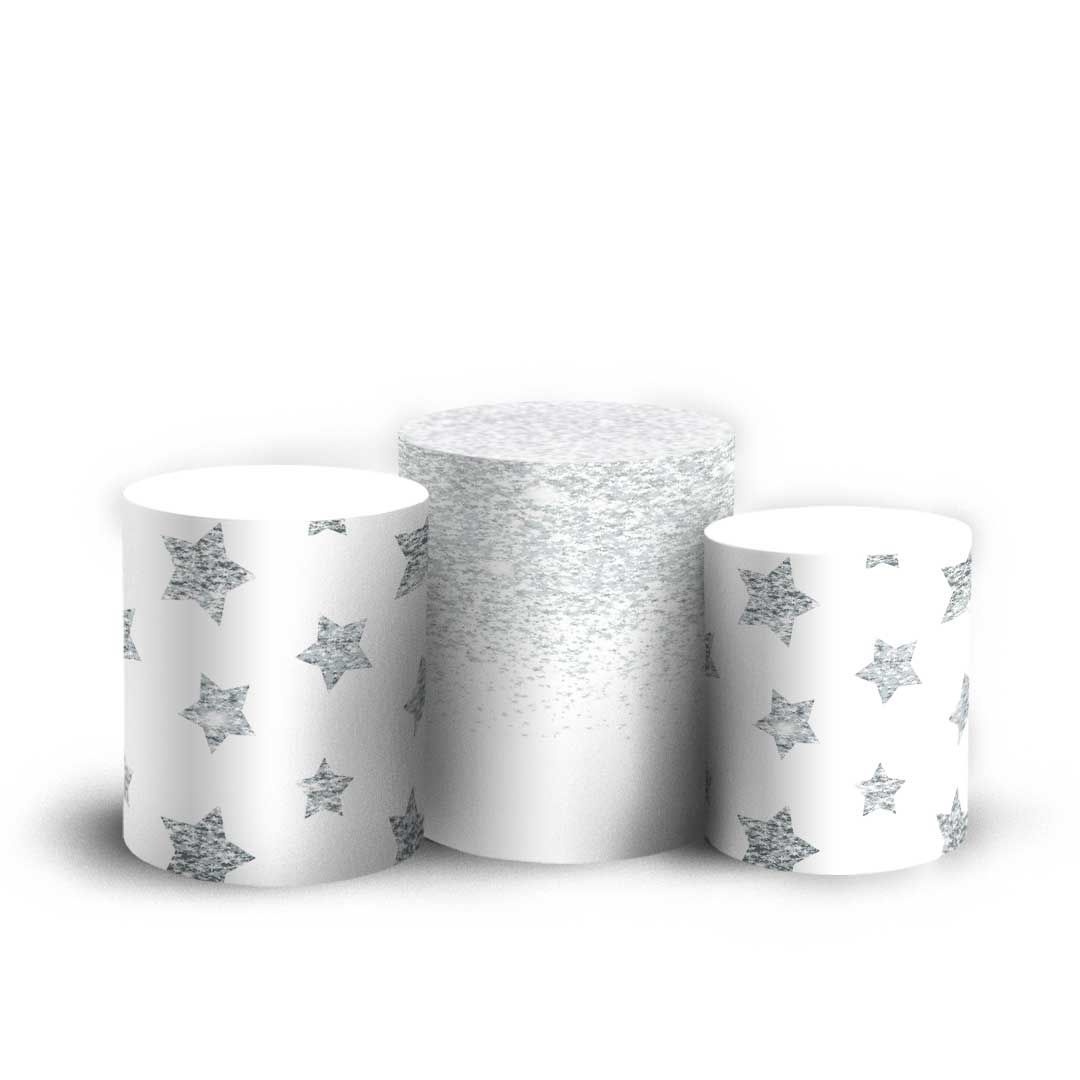 Trio Cilindro - Glitter Branco - Sublimado 3D + Elástico