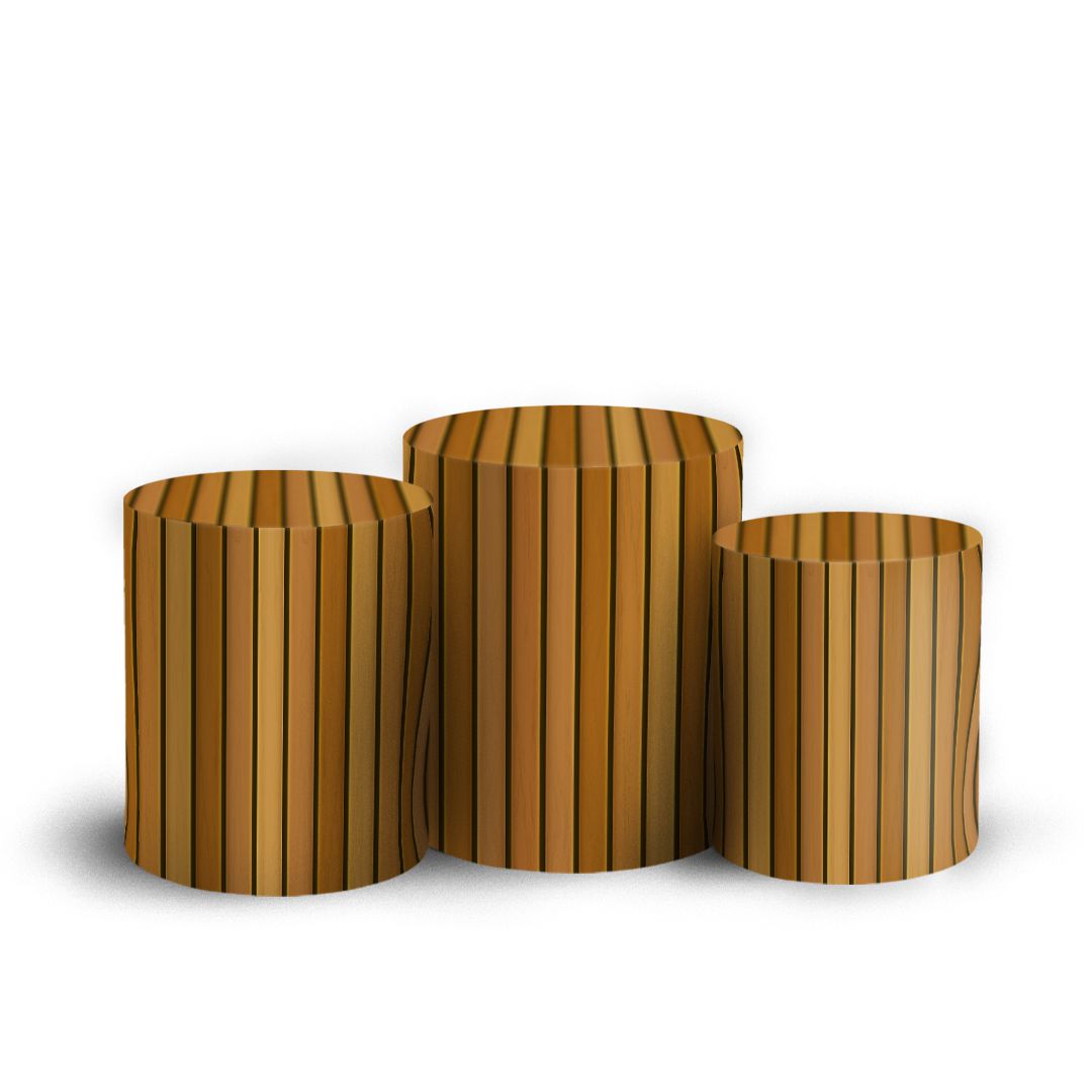 Trio Cilindro - Madeira Ripada - Sublimado 3D + Elástico