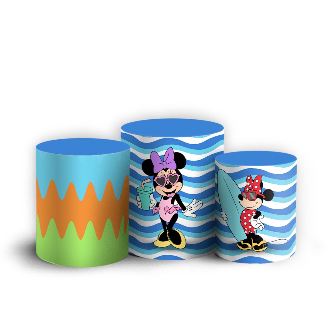 Trio Cilindro - Minnie Praia - Sublimado 3D + Elástico