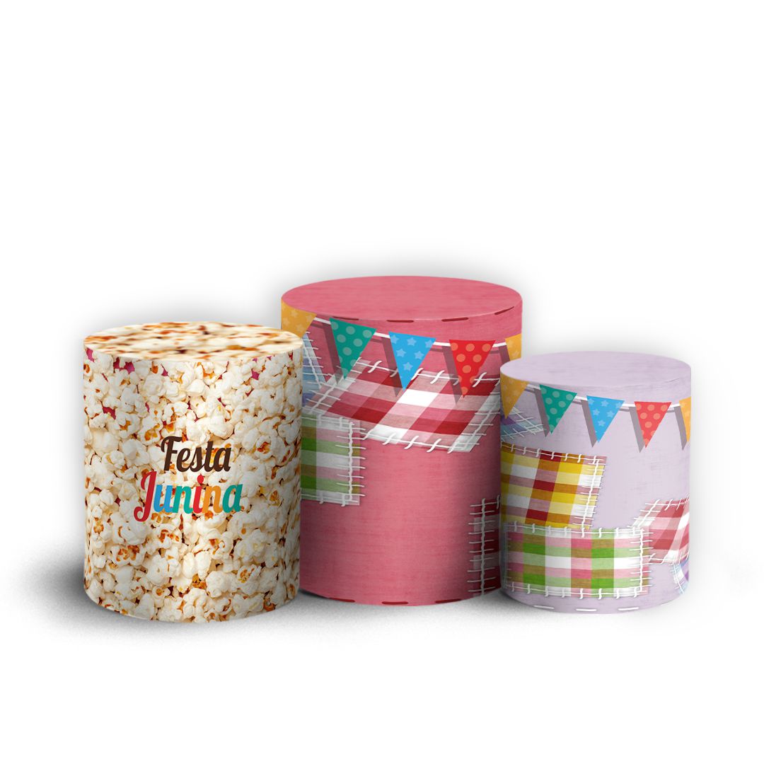 Trio Cilindro - Festa Junina - Sublimado 3D + Elástico