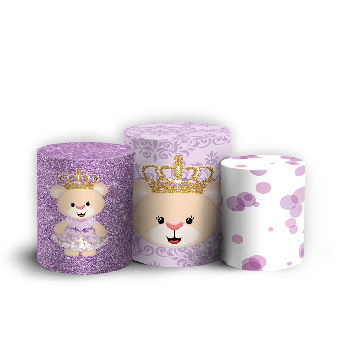 Trio Cilindro - Ursinha Lilas - Sublimado 3D + Elástico