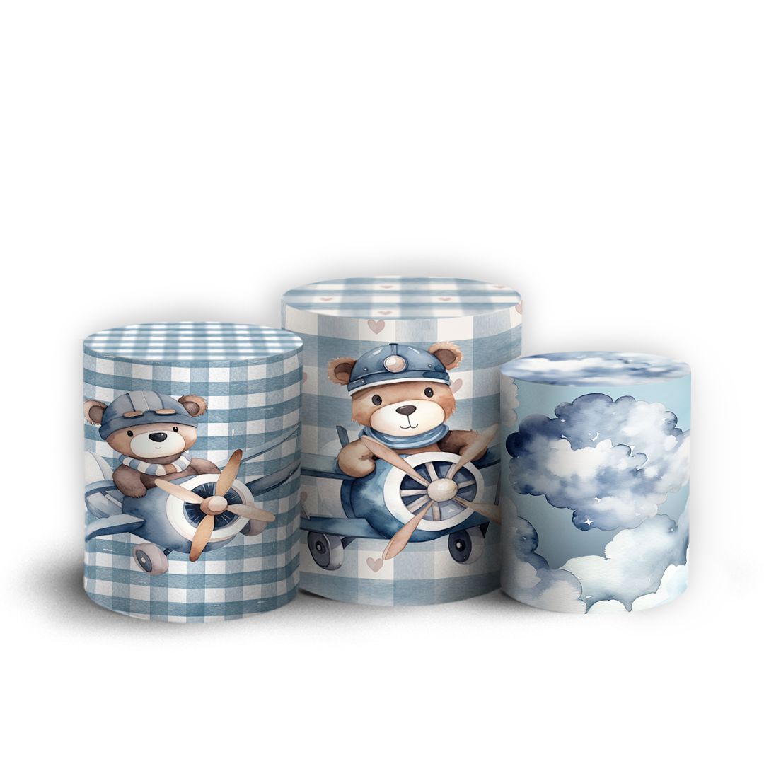 Trio Cilindro - Urso Azul - Sublimado 3D + Elástico