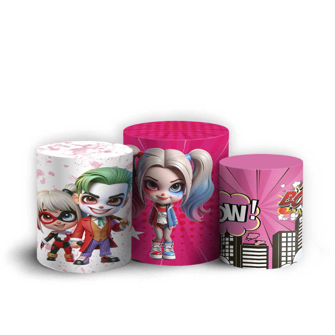 Trio Cilindro - Arlequina e Coringa - Sublimado 3D