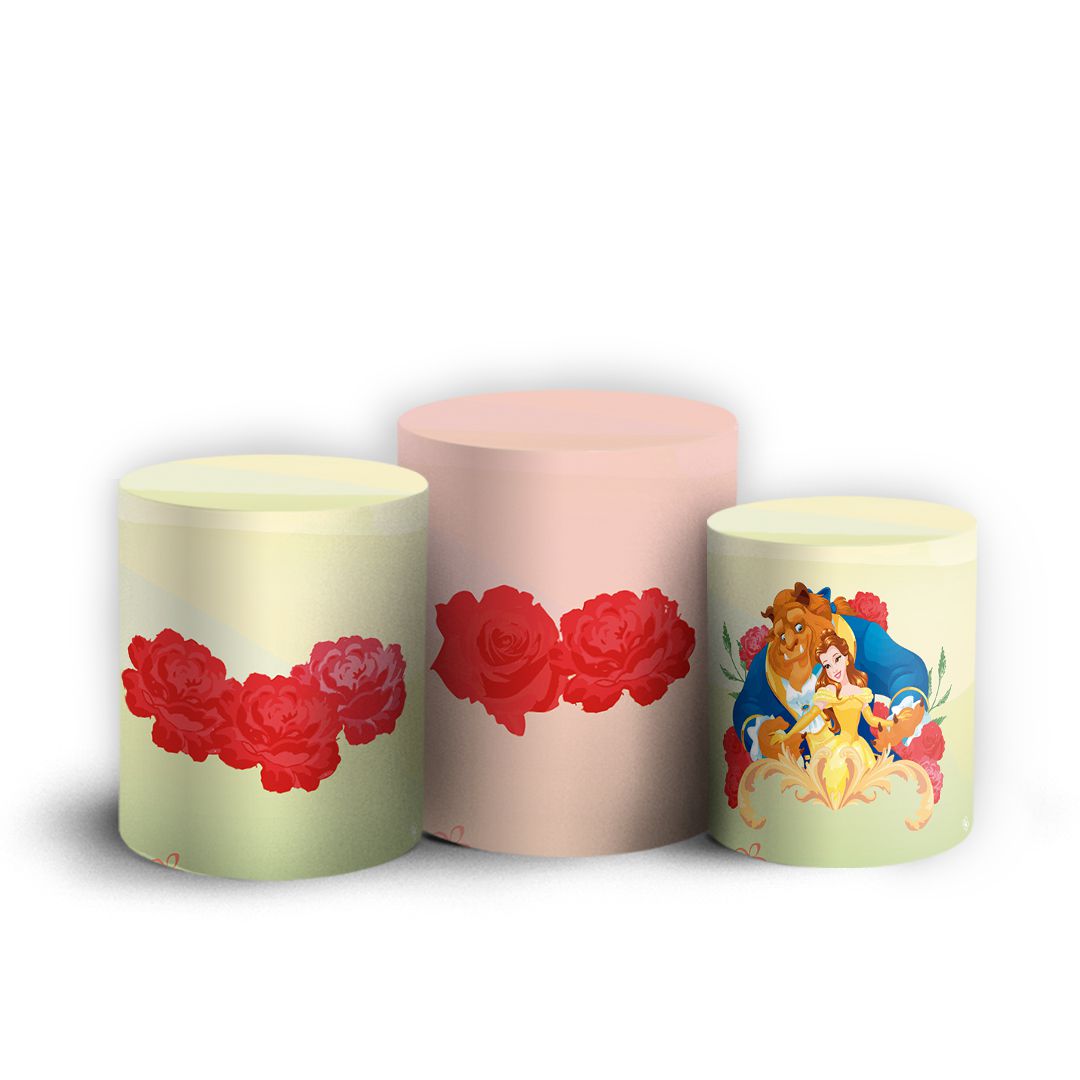 Trio Cilindro - Bela e a Fera - Sublimado 3D + Elástico