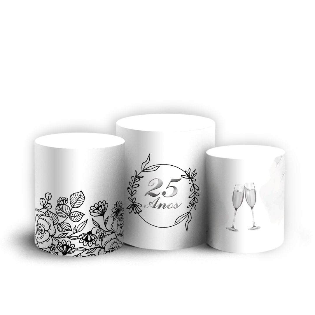 Trio Cilindro - Bodas de Prata - Sublimado 3D + Elástico
