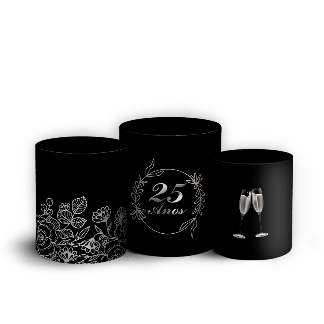 Trio Cilindro - Bodas de Prata - Sublimado 3D + Elástico