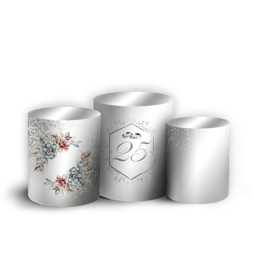 Trio Cilindro - Bodas de Prata - Sublimado 3D + Elástico