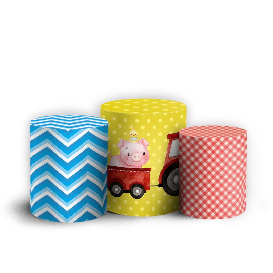 Trio Cilindro - Fazendinha - Sublimado 3D + Elástico