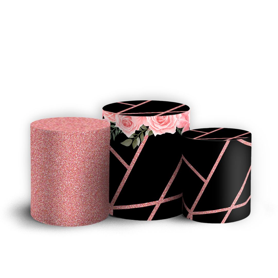 Trio Cilindro - Floral Geometrico - Sublimado 3D + Elástico