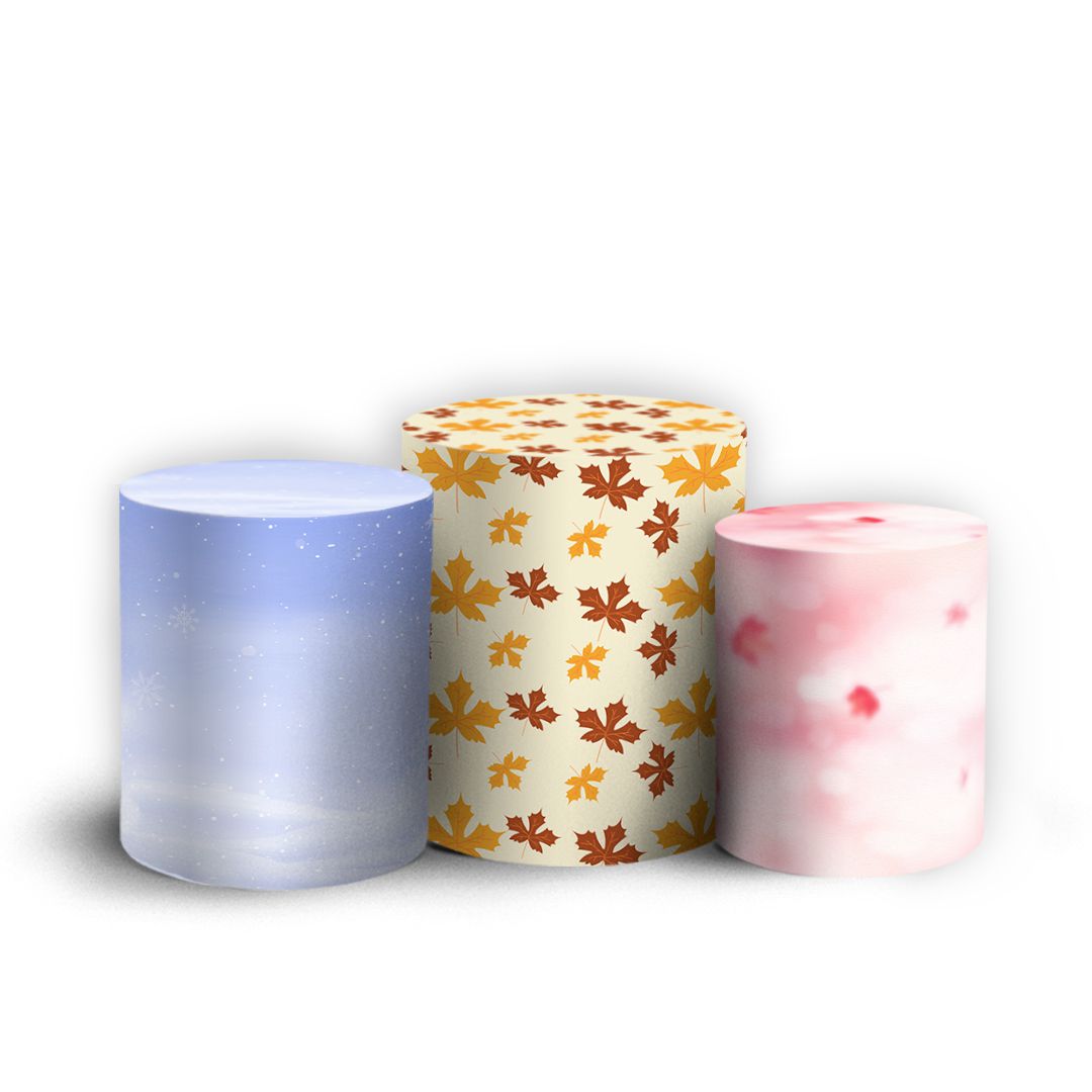 Trio Cilindro sublimado em tecido 100 % poliéster de alta gramatura.