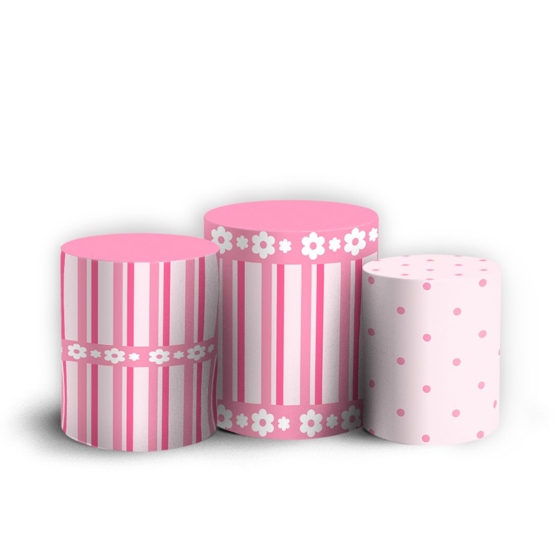 Trio Cilindro - Listras Ursinha Balao Rosa - Sublimado 3D + Elástico