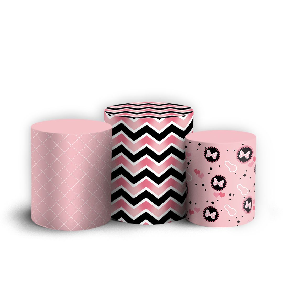 Trio Cilindro - Minnie Rosa - Sublimado 3D + Elástico
