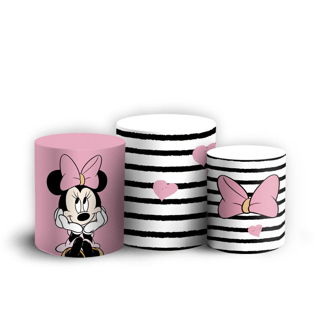 Trio Cilindro - Minnie Rosa - Sublimado 3D + Elástico