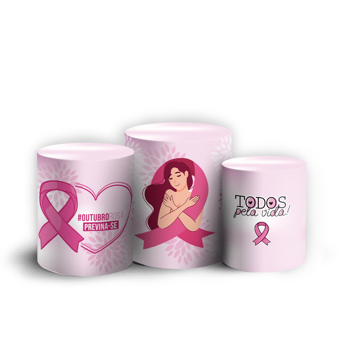 Trio Cilindro - Outubro Rosa - Sublimado 3D + Elástico