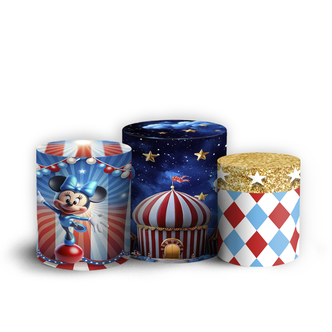 Trio Cilindro Sublimado 3D - Mickey-E-Minnie-Circo