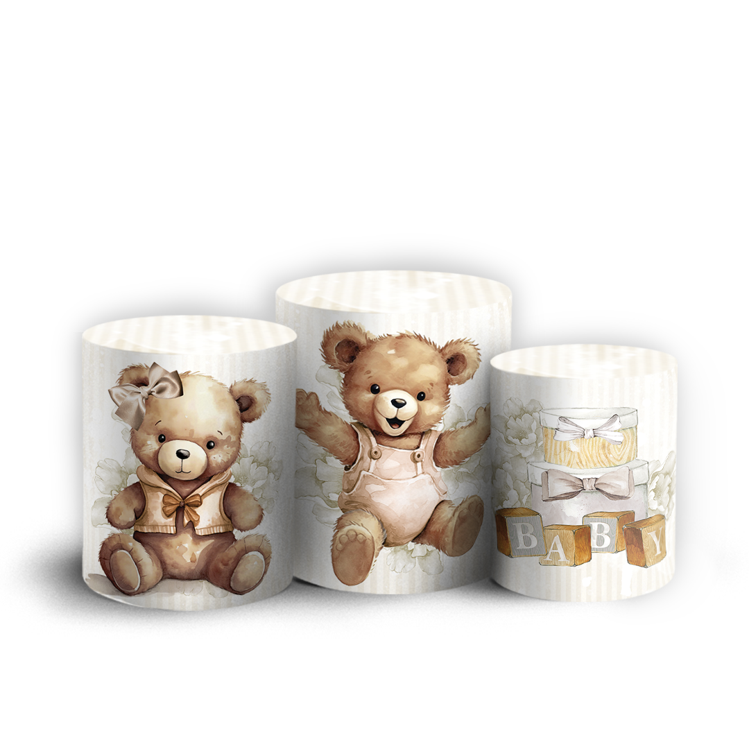 Trio Cilindro Sublimado 3D - Ursinho Bege