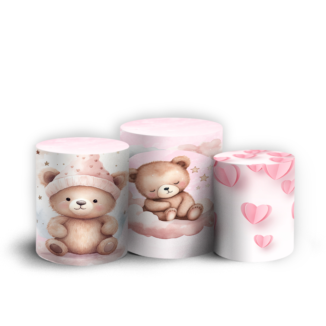 Trio Cilindro - Ursinha Rosa - Sublimado 3D + Elástico