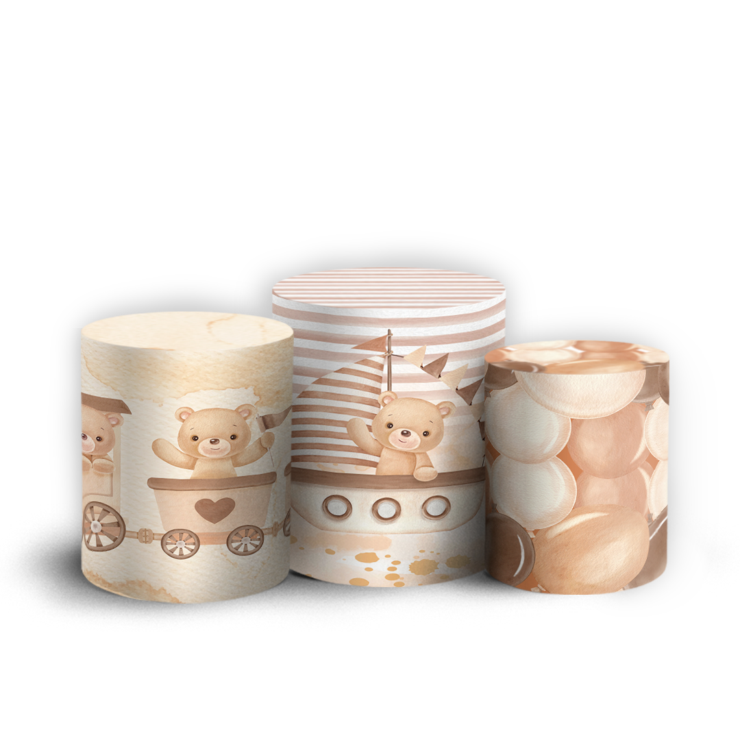 Trio Cilindro - Ursinho Marrom - Sublimado 3D + Elástico